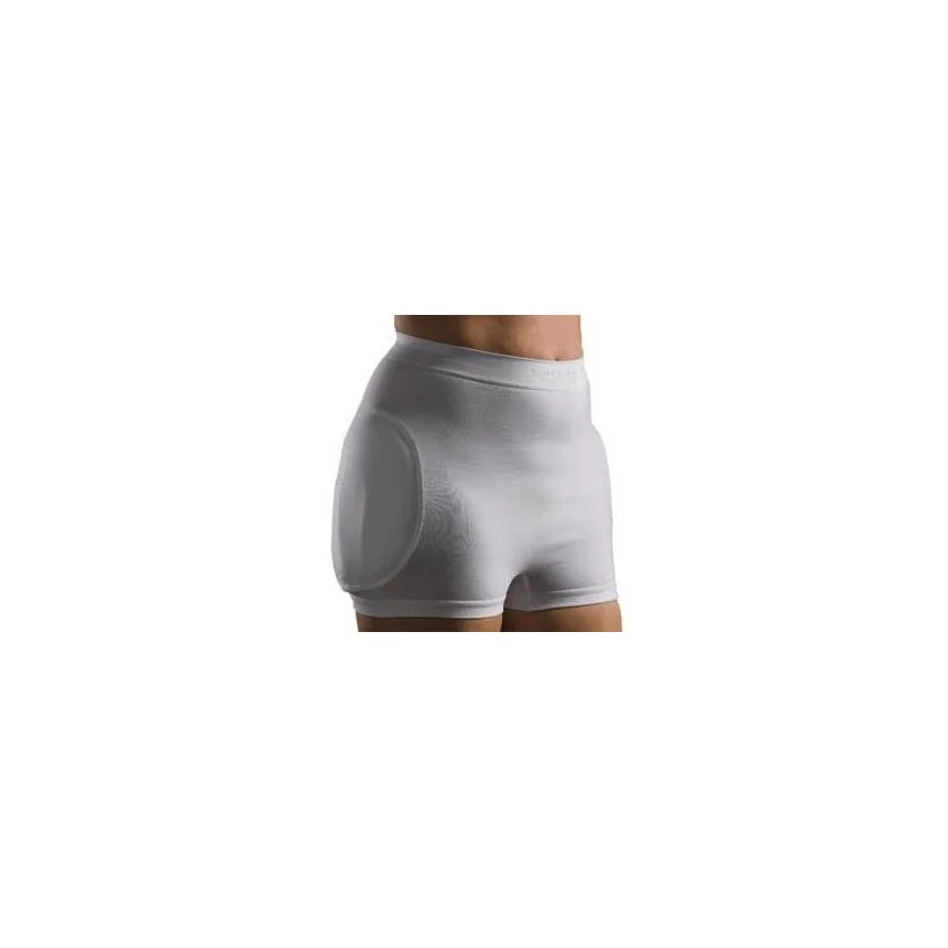 Feature impact-absorbing, soft foam pads over the critical fracture area to help reduce the risk of injuries from a fall, such as hip fracture.